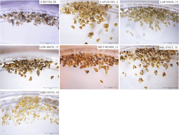 A presença desses veios e a estrutura dos grãos de piroxênio (minerais que contêm cálcio, magnésio, ferro e alumínio) sugerem que a amostra sofreu pressões de até 25 gigapascal (GPa).